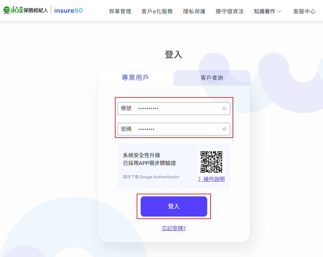 Step 2 : 請於系統登入頁面,輸入您的「 帳號 」「 密碼 」後,