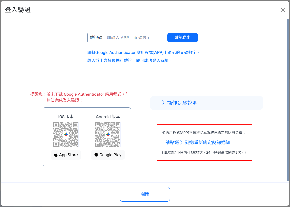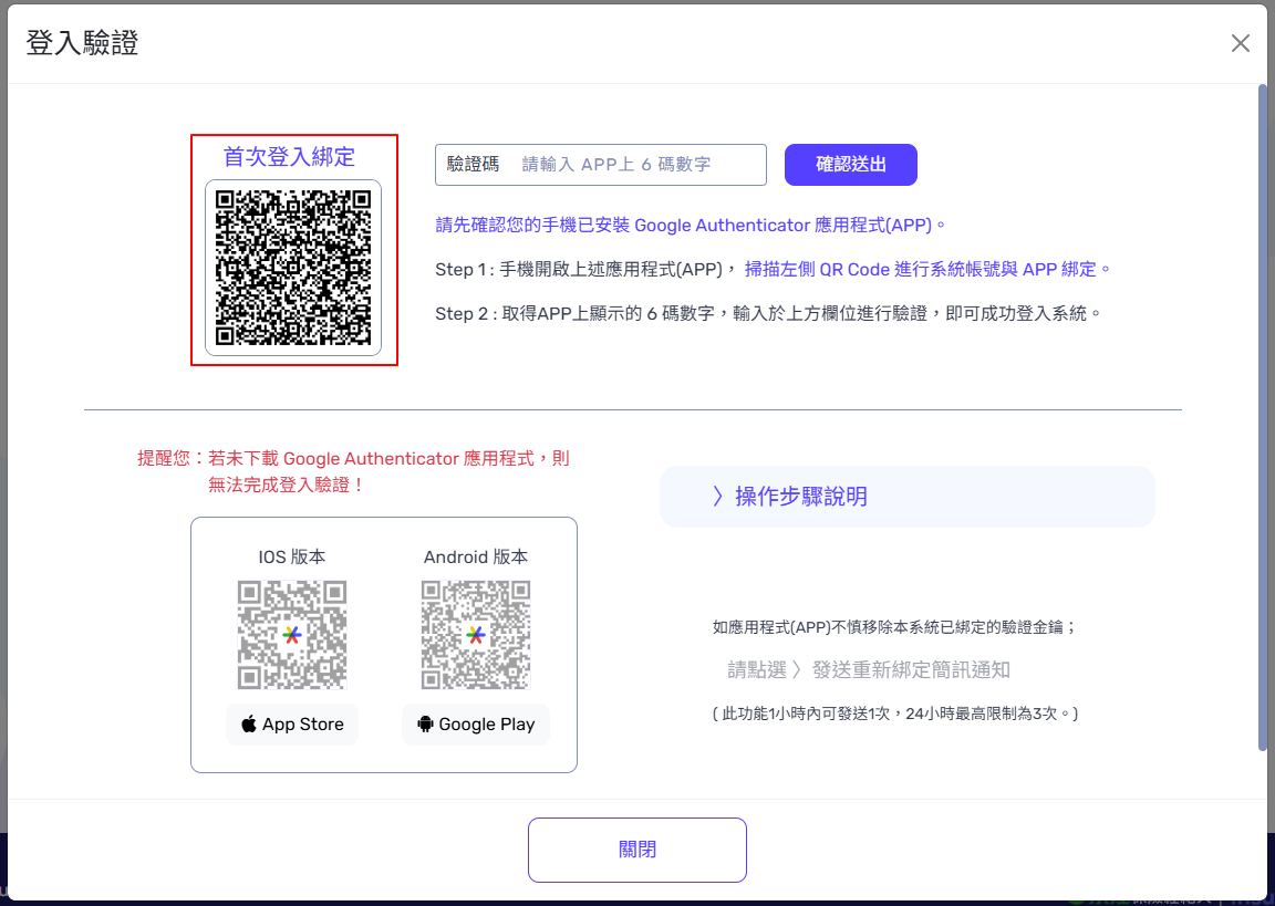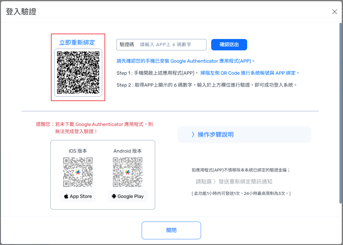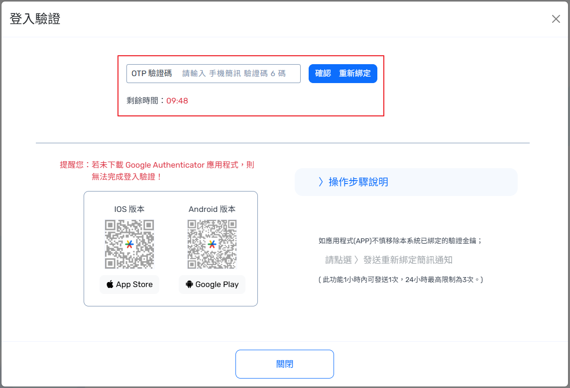 【APP 兩步驟驗證登入機制】 操作說明